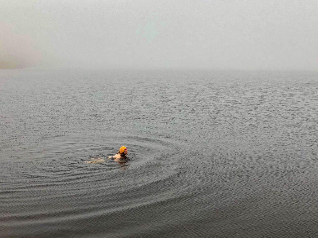 Grisedale Tarn was cloaked in mist, making it impossible to discern where it started and stopped and giving the illusion of rising vertically into the air. It was majestic and daunting at the same time and we laughed our way into the water, swimming only breaststroke and staying close to shore as it was too cold to put faces in. It didn't matter, the objective was to experience the elements full force, and to share a moment in nature together. The tea and sandwiches afterwards were all part of the ritual.