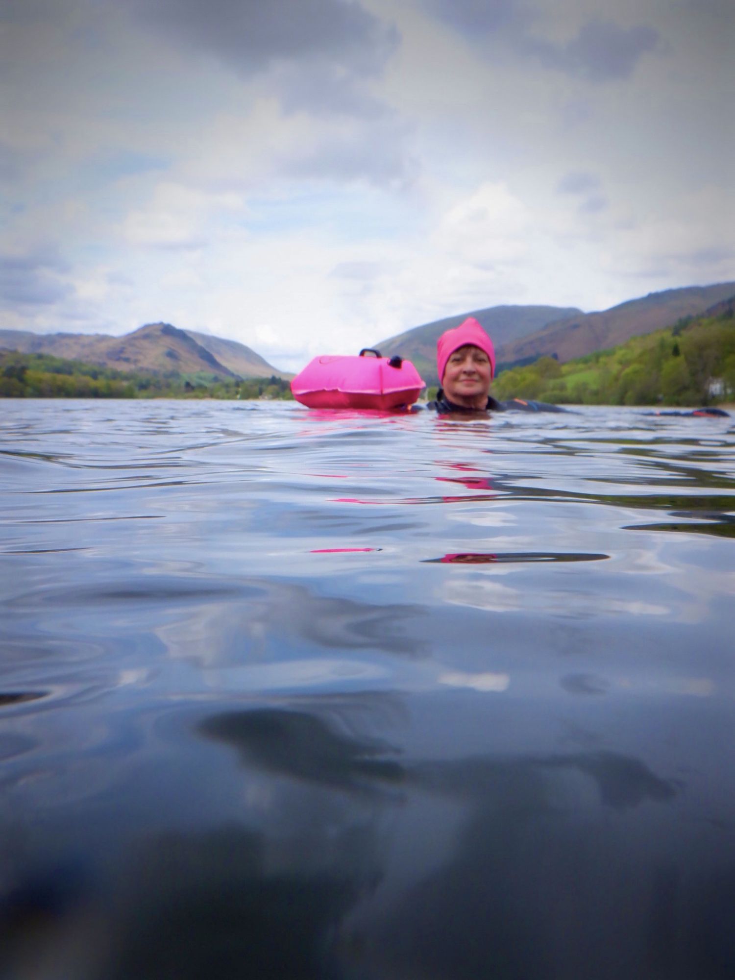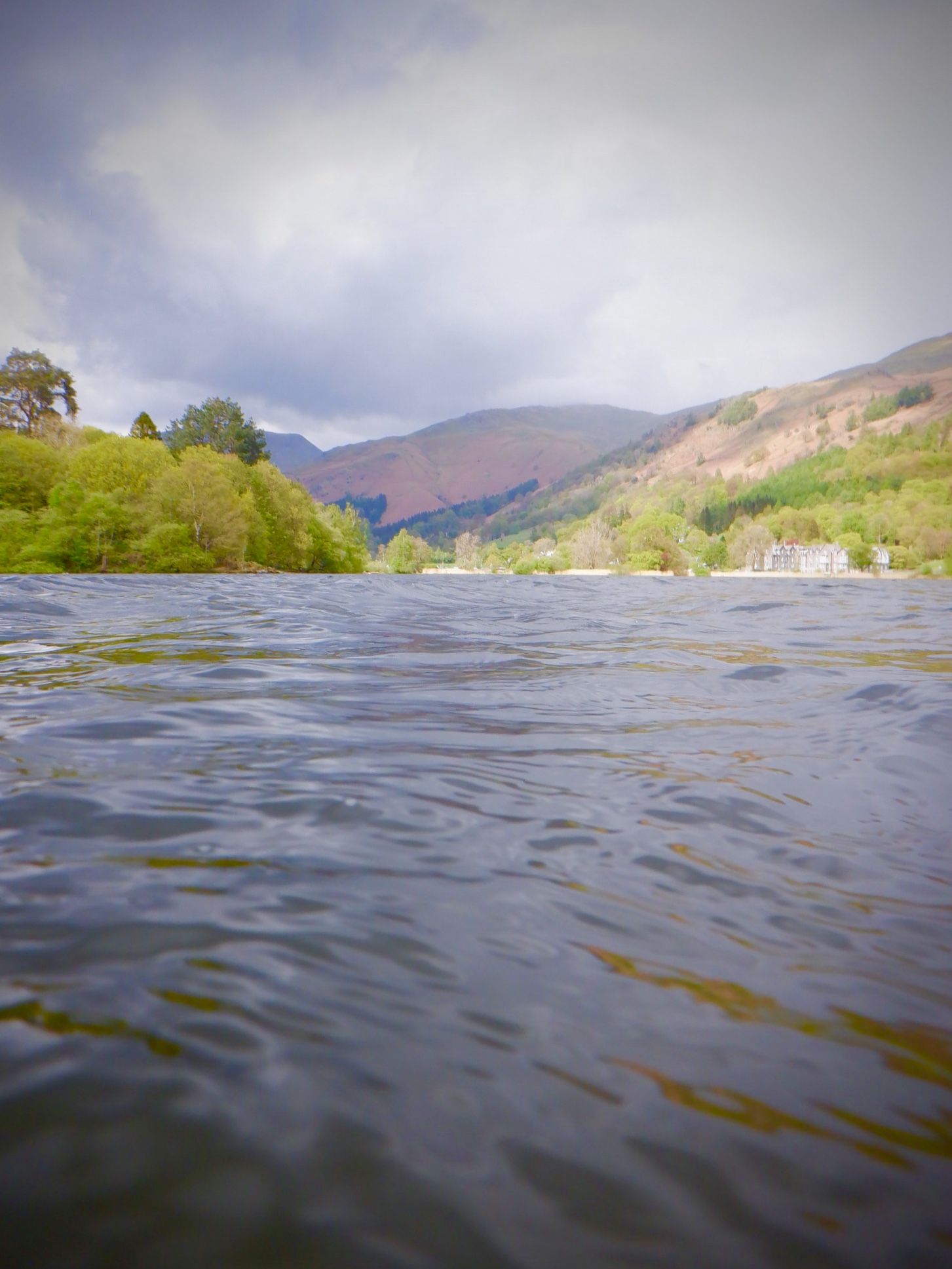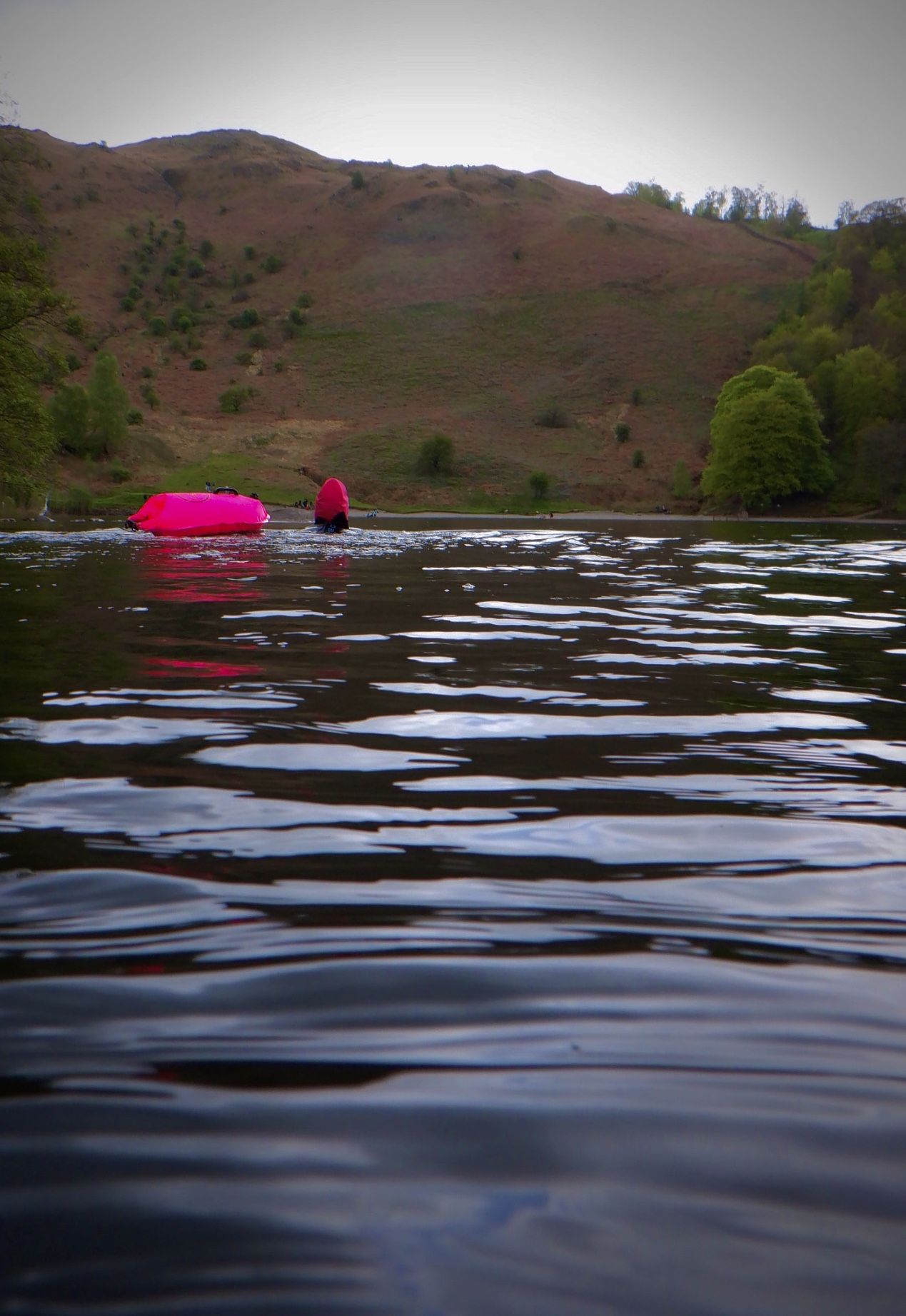 We crossed Grasmere with hardly a breath of air, gliding through flat, still waters. But as we headed up towards the new boathouse, the clouds descended over the tops of the fells and a fresh breeze started to create movement across the top of the water. Swimming breaststroke we pushed on to the island and then cut across to the other side of the lake, taking care not to swim directly into the wind. By the time we neared our shore, all was quiet again and the sun came out to warm us up. We then took a short journey down to Rydal, to swim around and between the islands in the evening light. Swimming breaststroke allowed us to chat and laugh, and to stop and just enjoy the magnificent surroundings.